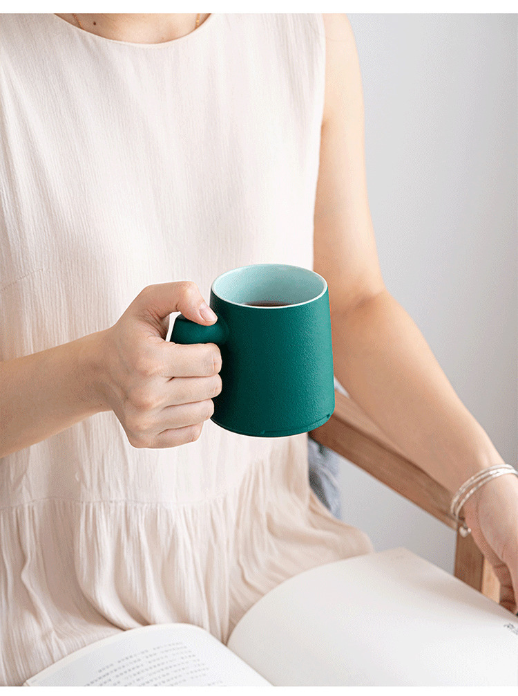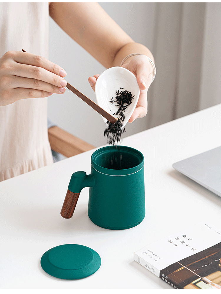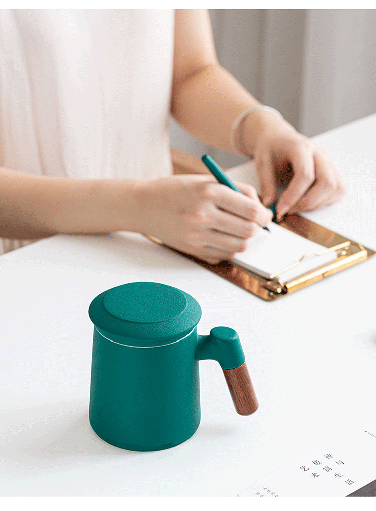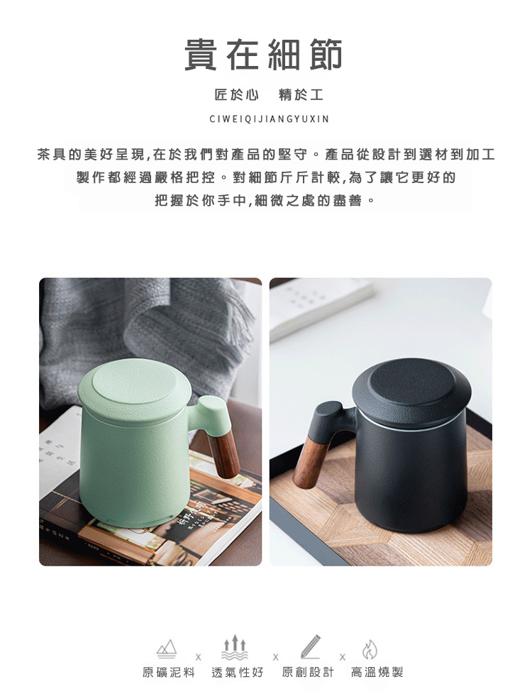 台灣檢驗胡桃木手柄陶瓷帶蓋馬克杯400ml
