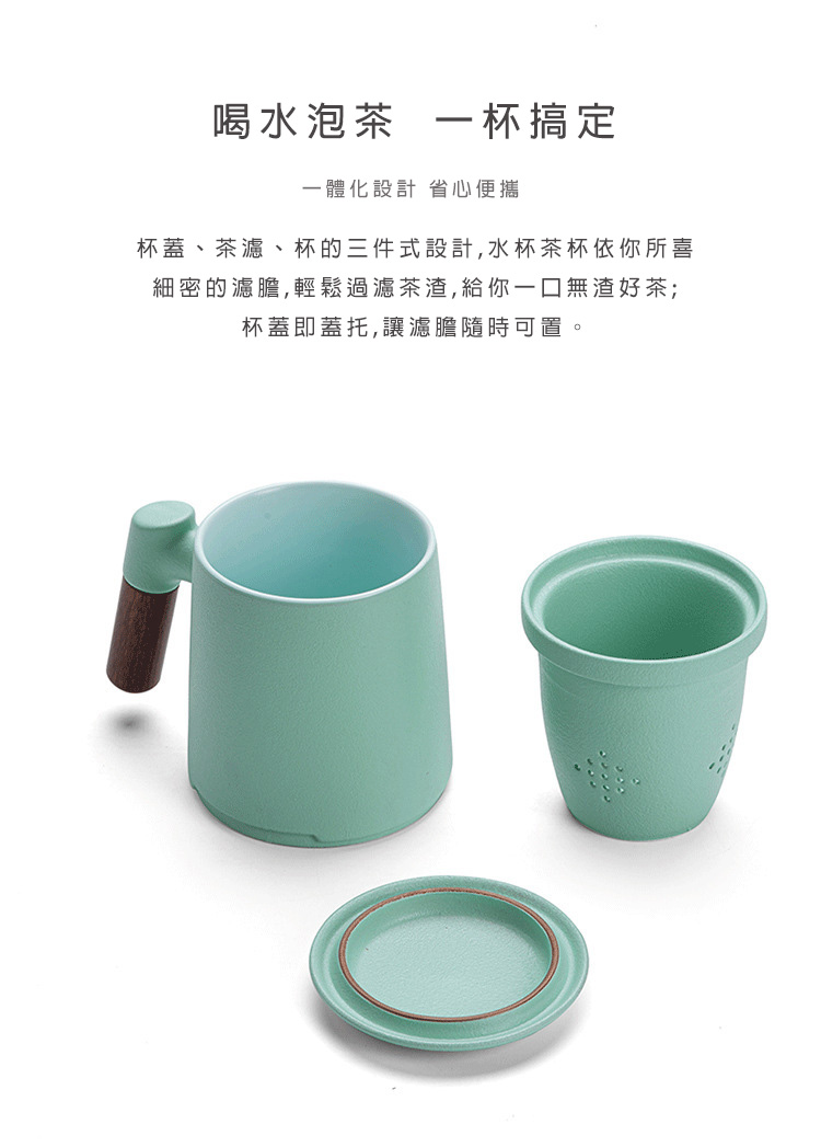 杯蓋、茶濾、杯的三件式設計,水杯茶杯依你所喜