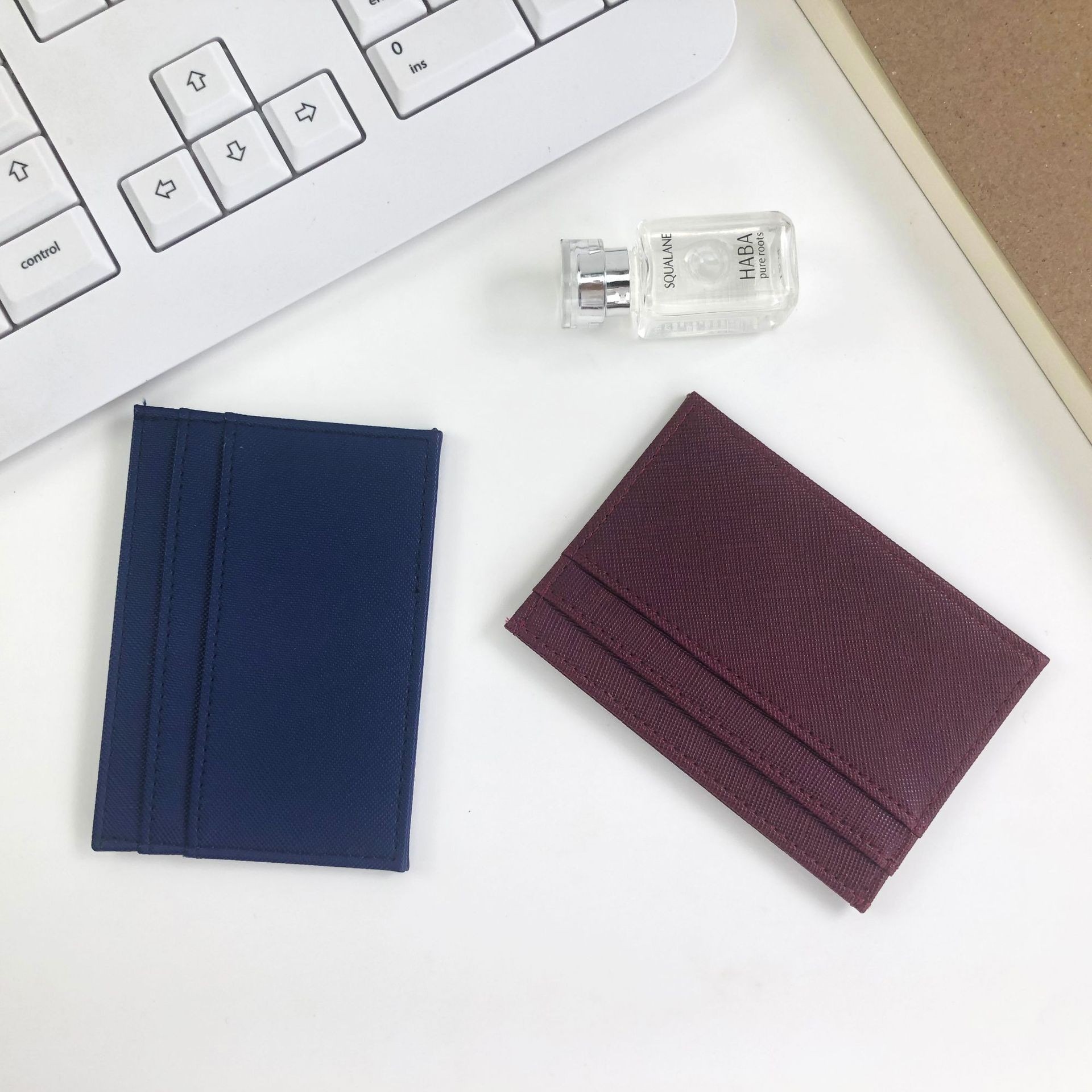 PU皮革十字紋證件包 × 鑰匙扣套裝