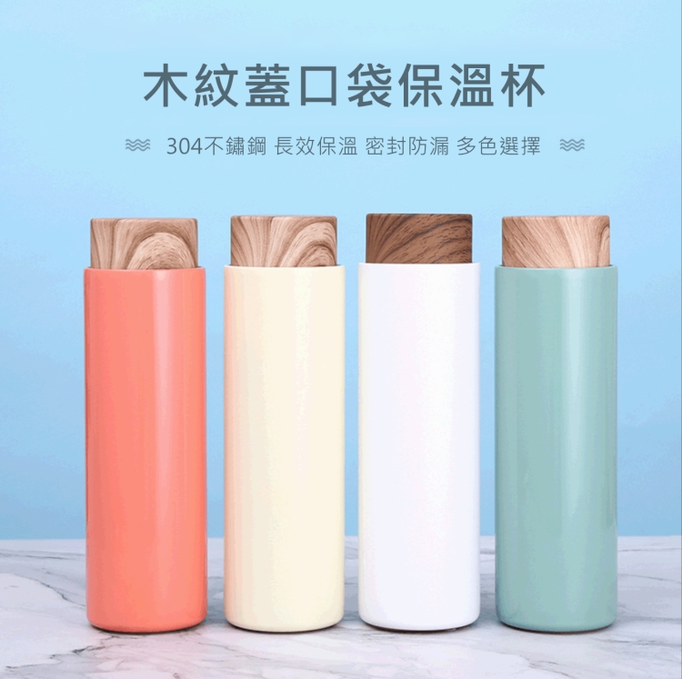 木紋蓋保溫杯304不鏽鋼直身杯簡約運動水杯